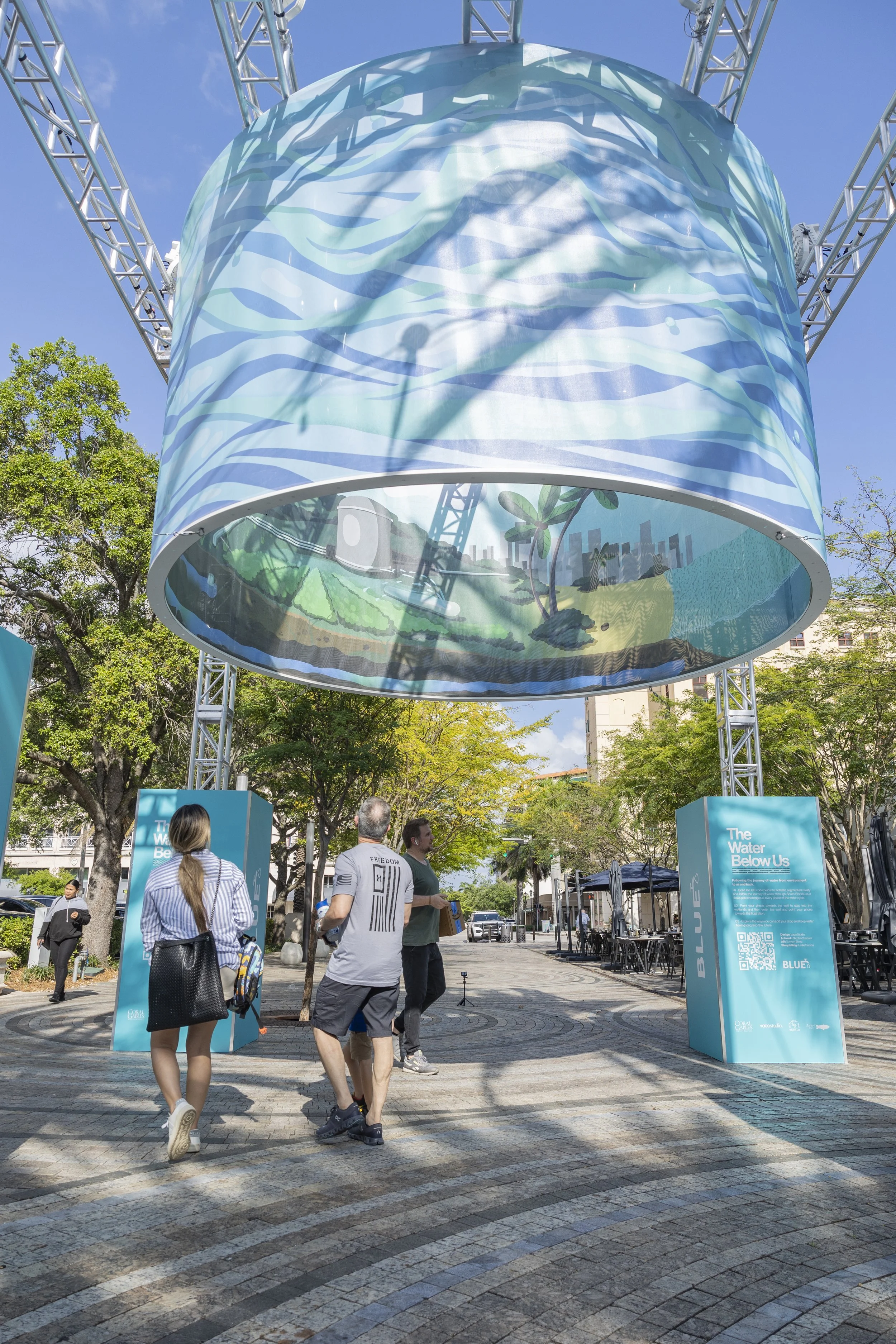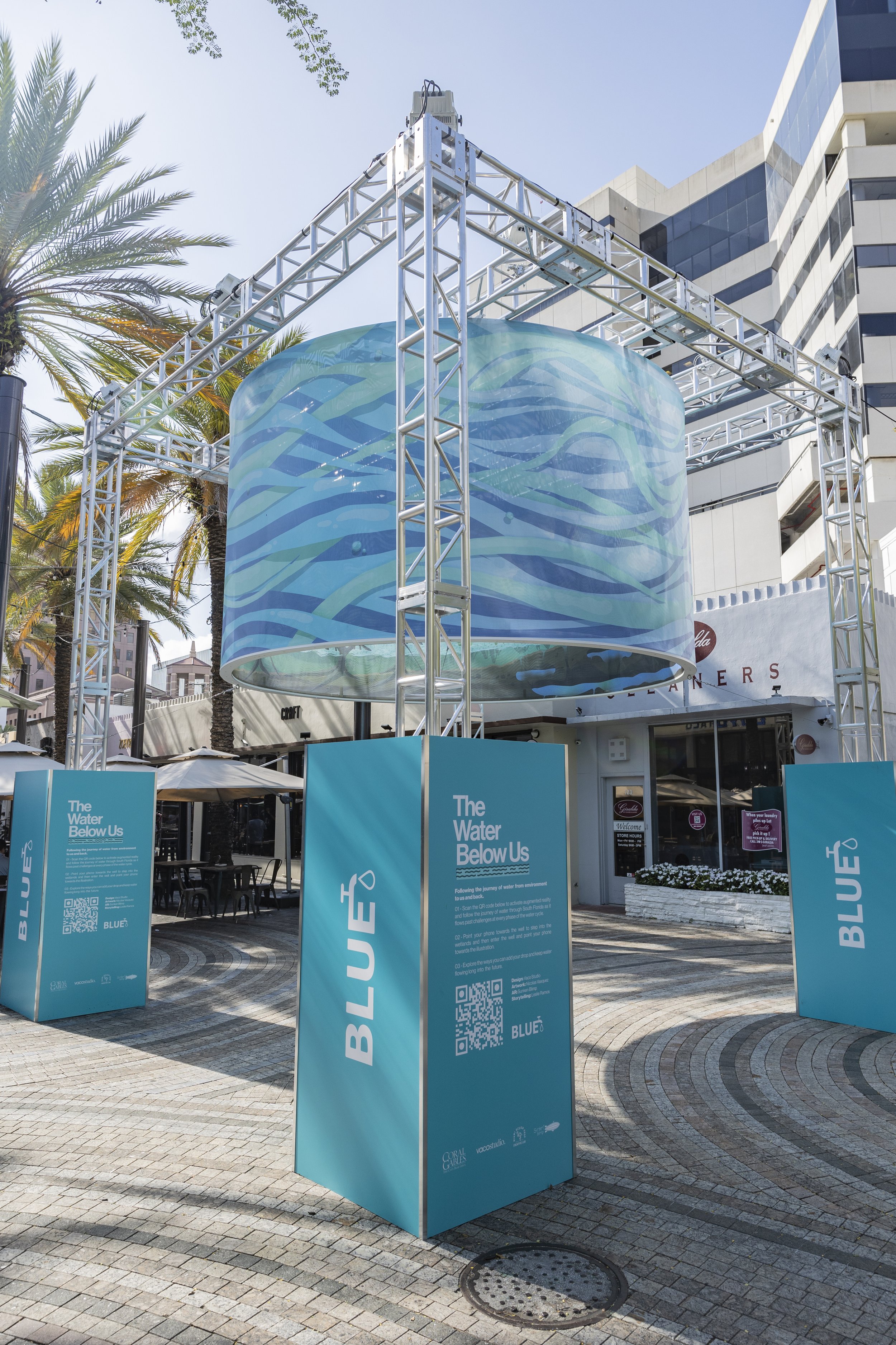 Miami Design Shop partnered with BLUE Missions and Vaco Studio to fabricate and help bring to life The Water Below Us, a public art installation designed to raise awareness about the fragile state of South Florida’s water systems. Installed in the heart of Coral Gables, the project combines sculptural fabrication, environmental storytelling, and augmented reality to create an immersive educational experience for the public.